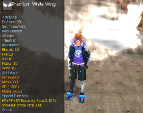HP+800, Tradable & droppable.Only the acc cumulative topped up more than 20k epoints can purchase this item.